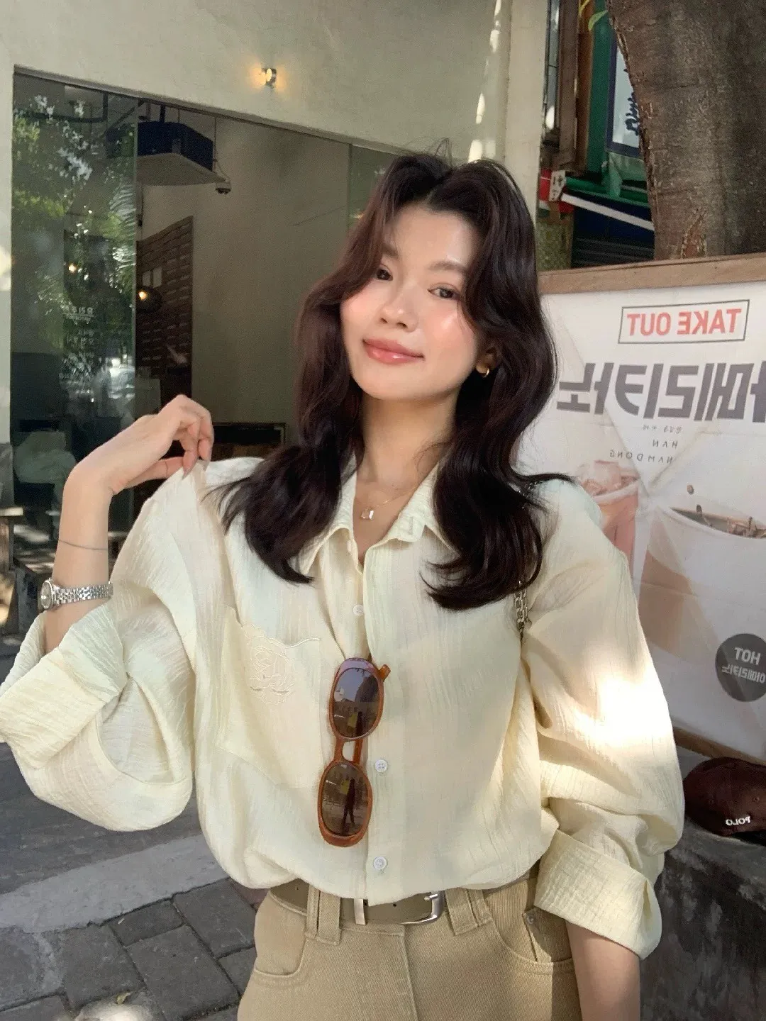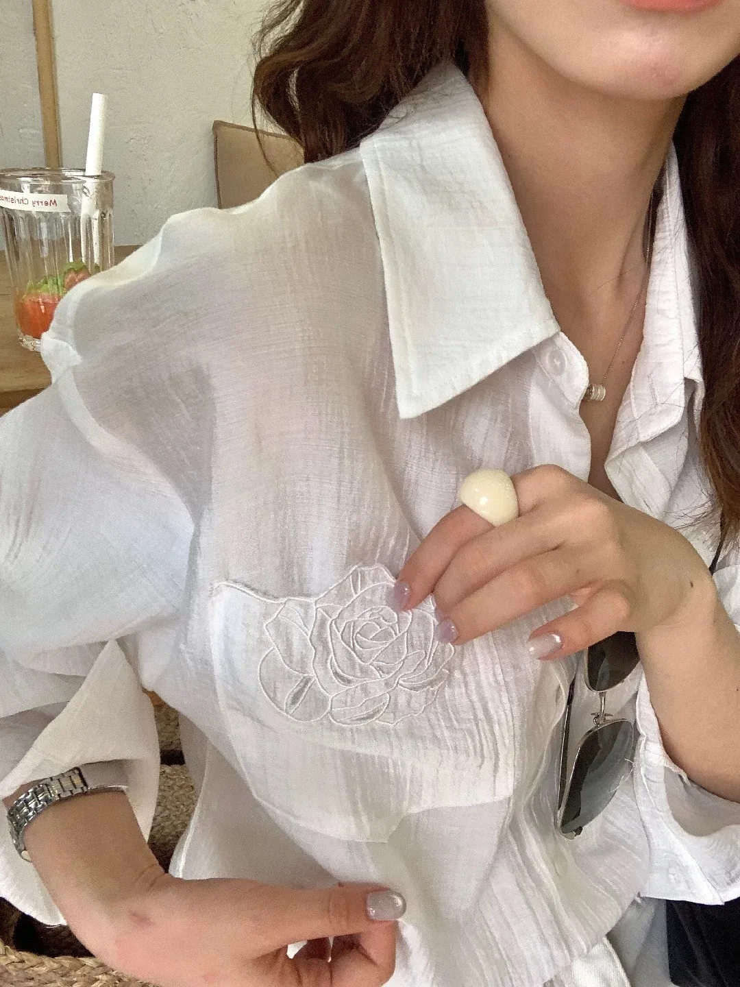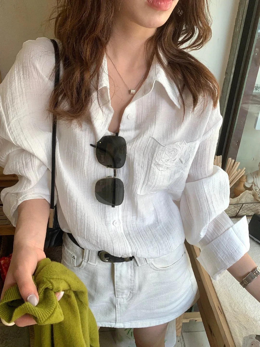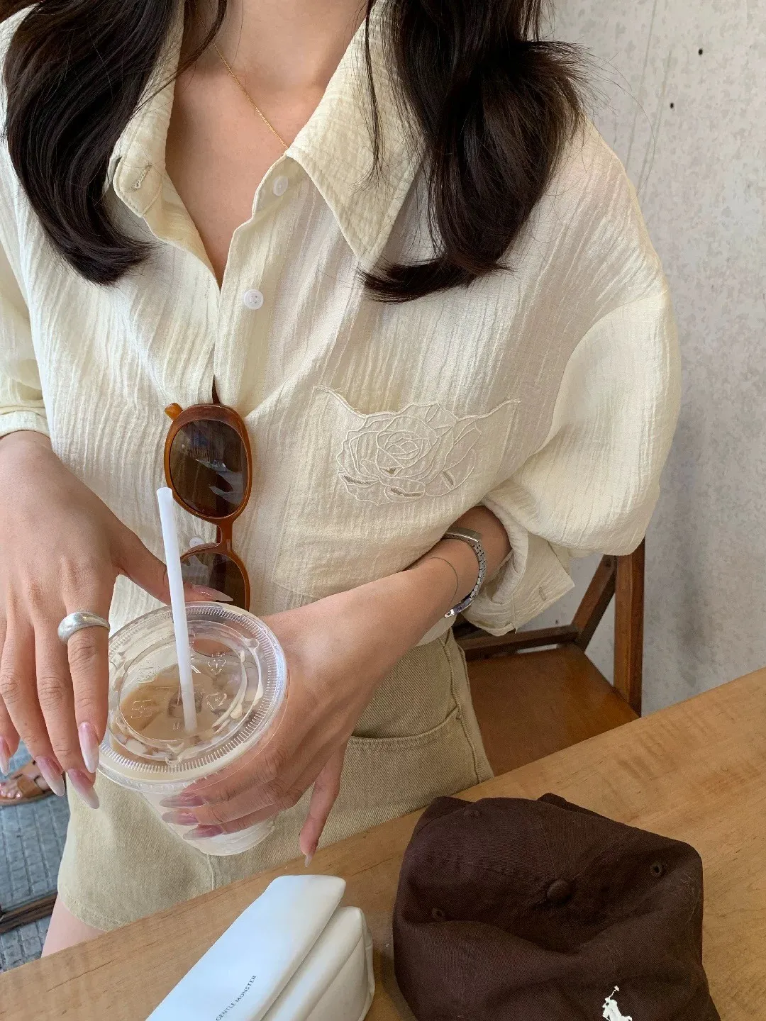 韓系輕奢質感亞麻寬鬆襯衫