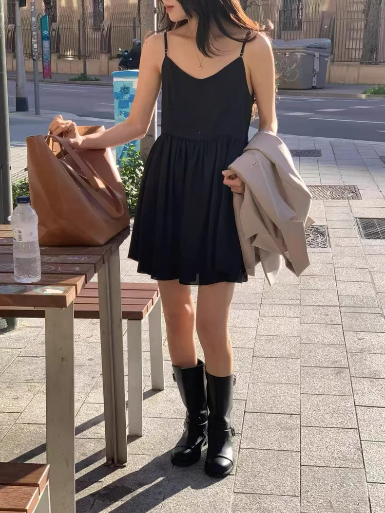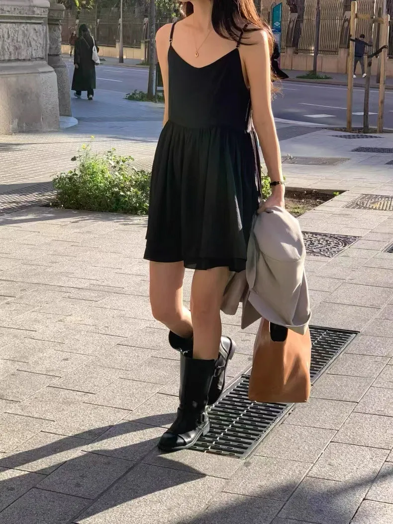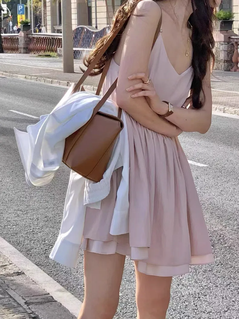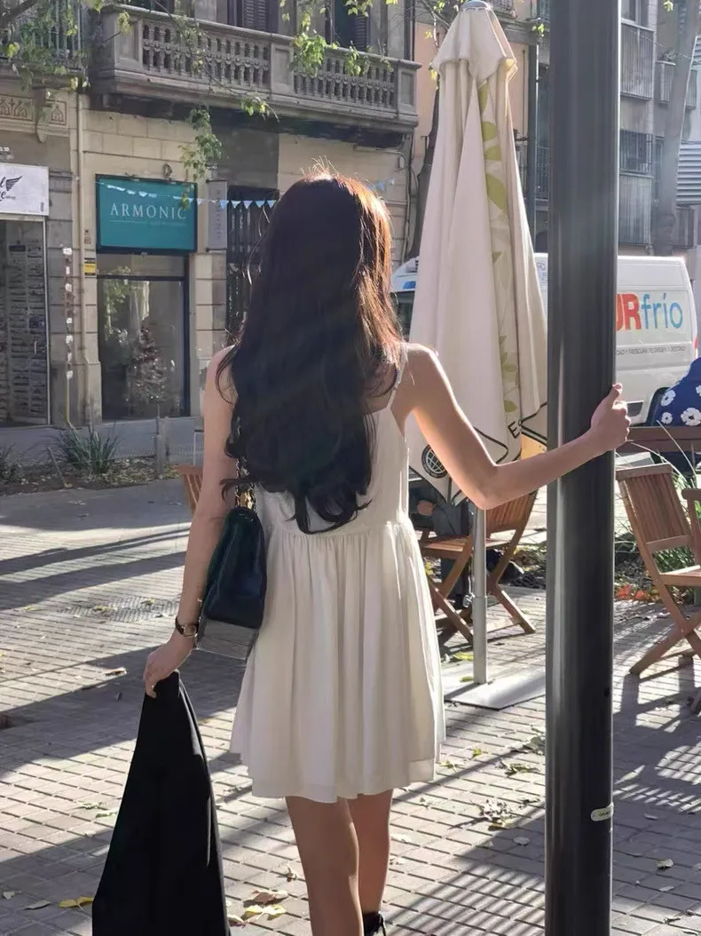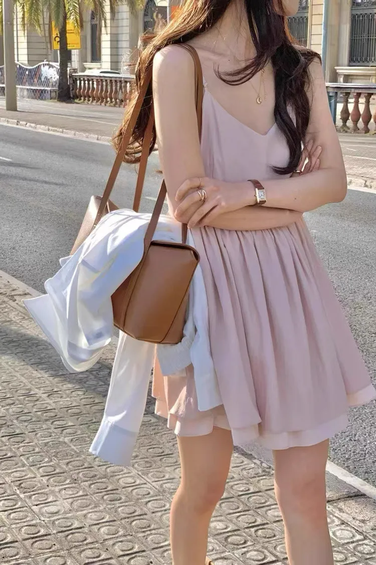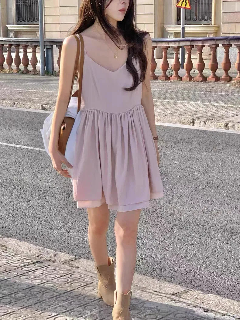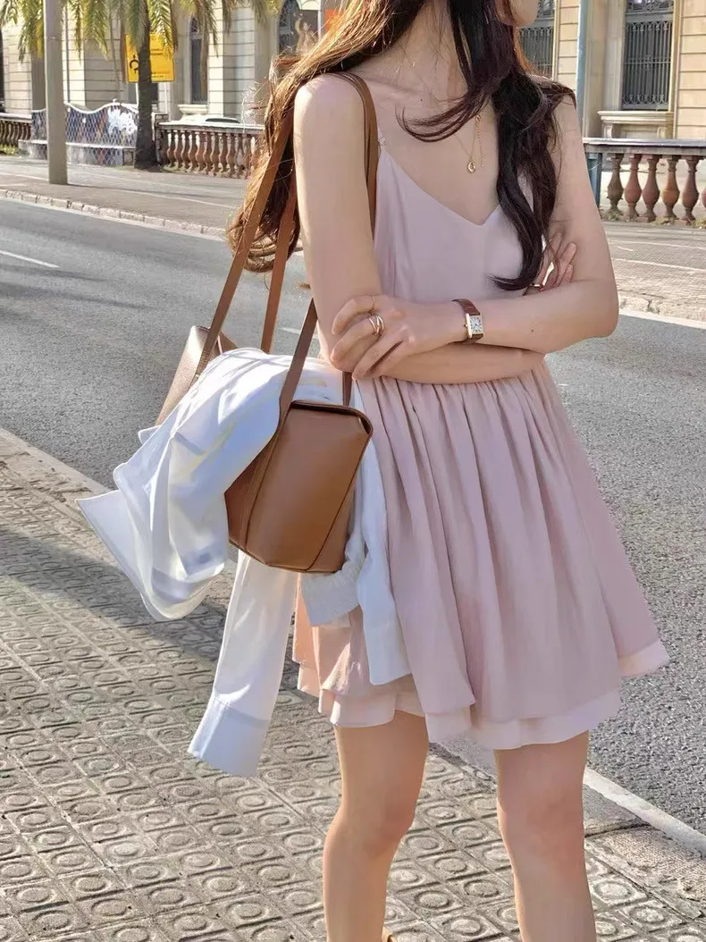 小眾高級感雙層荷葉邊吊帶連衣裙