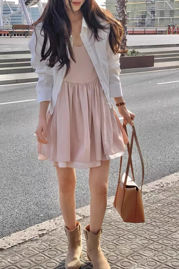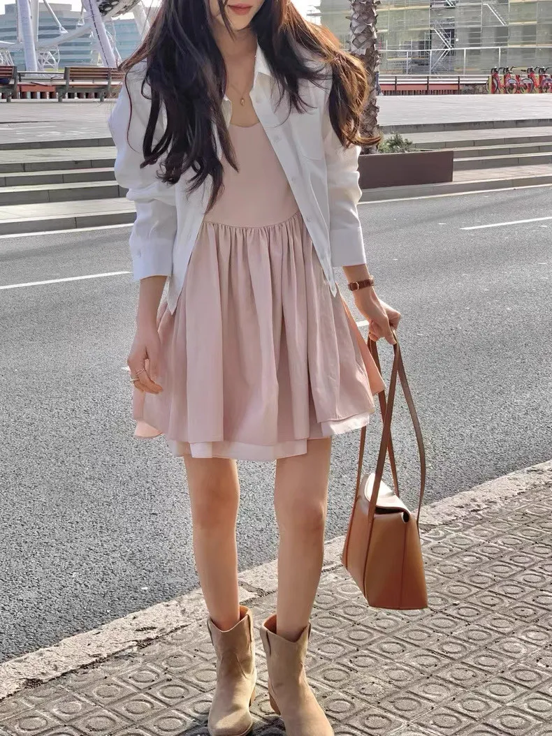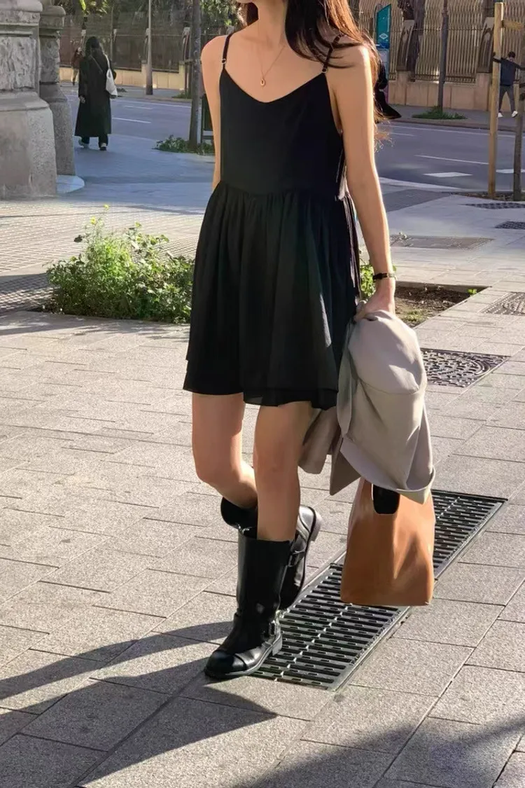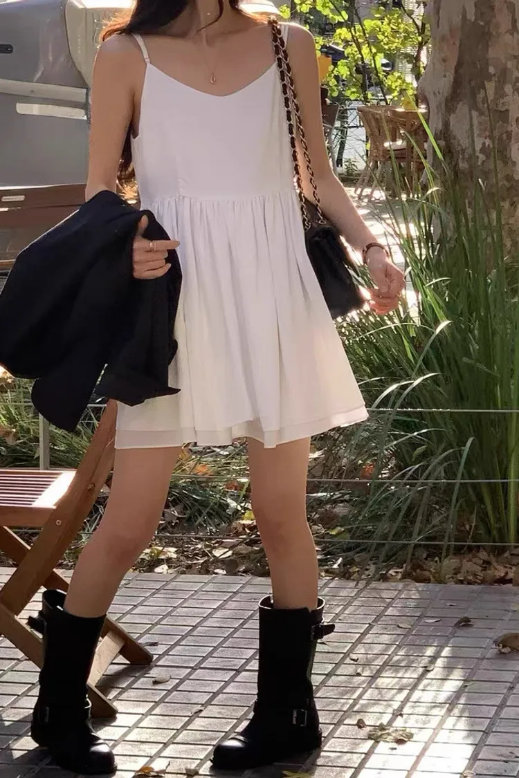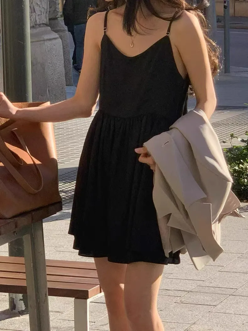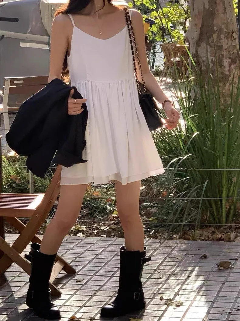 小眾高級感雙層荷葉邊吊帶連衣裙