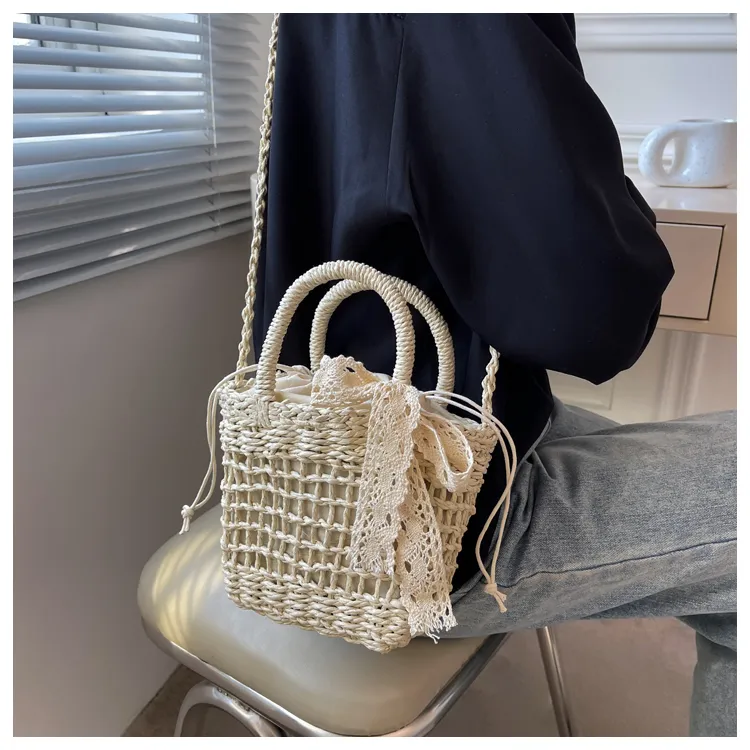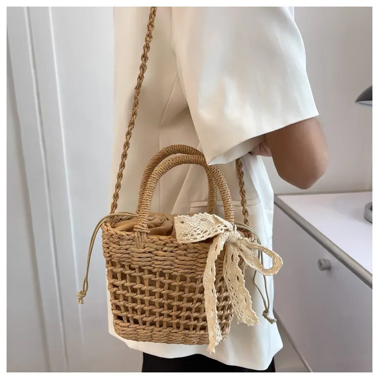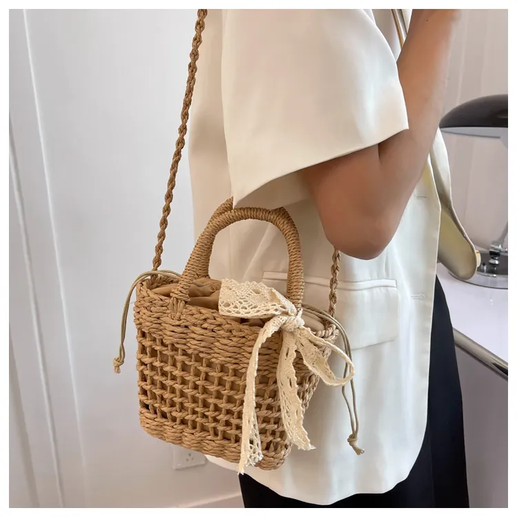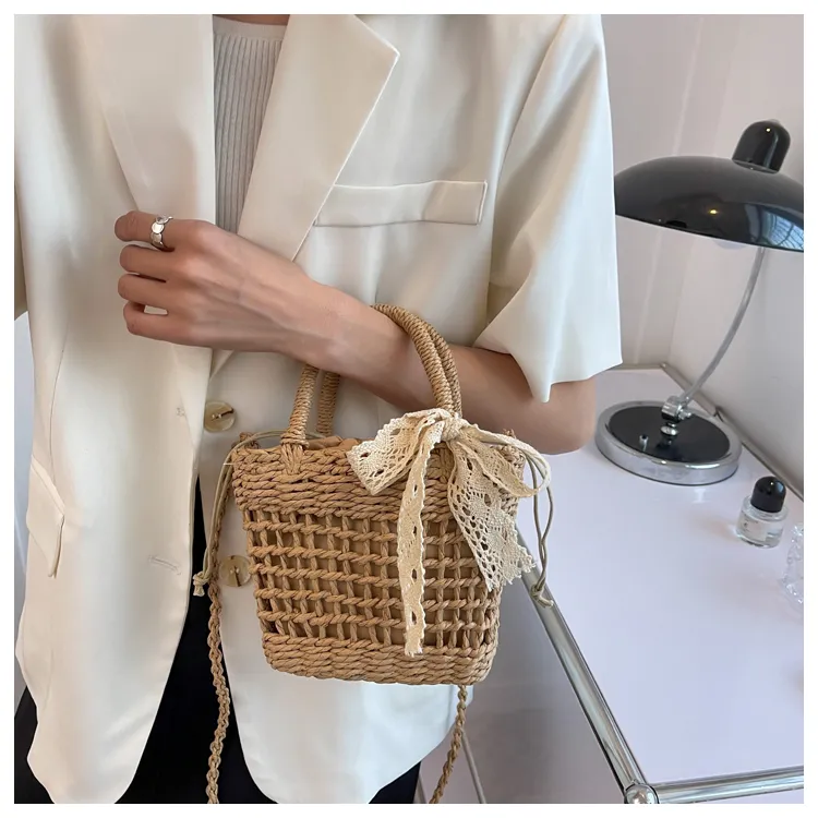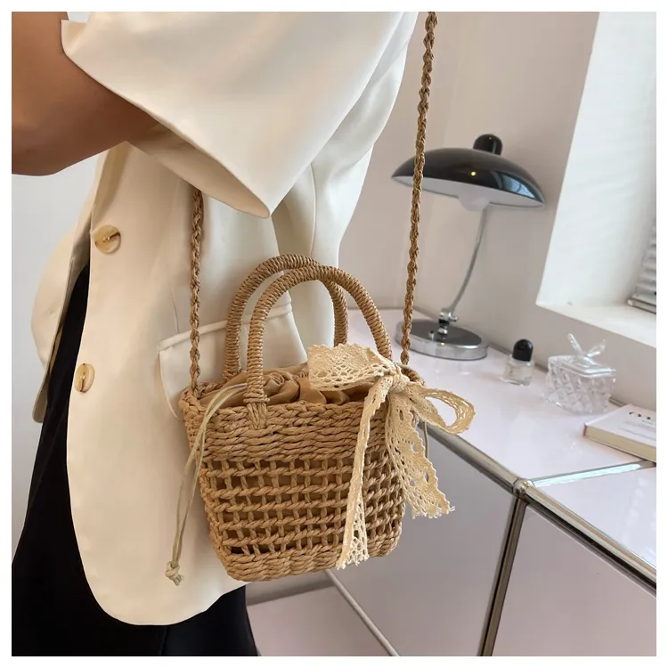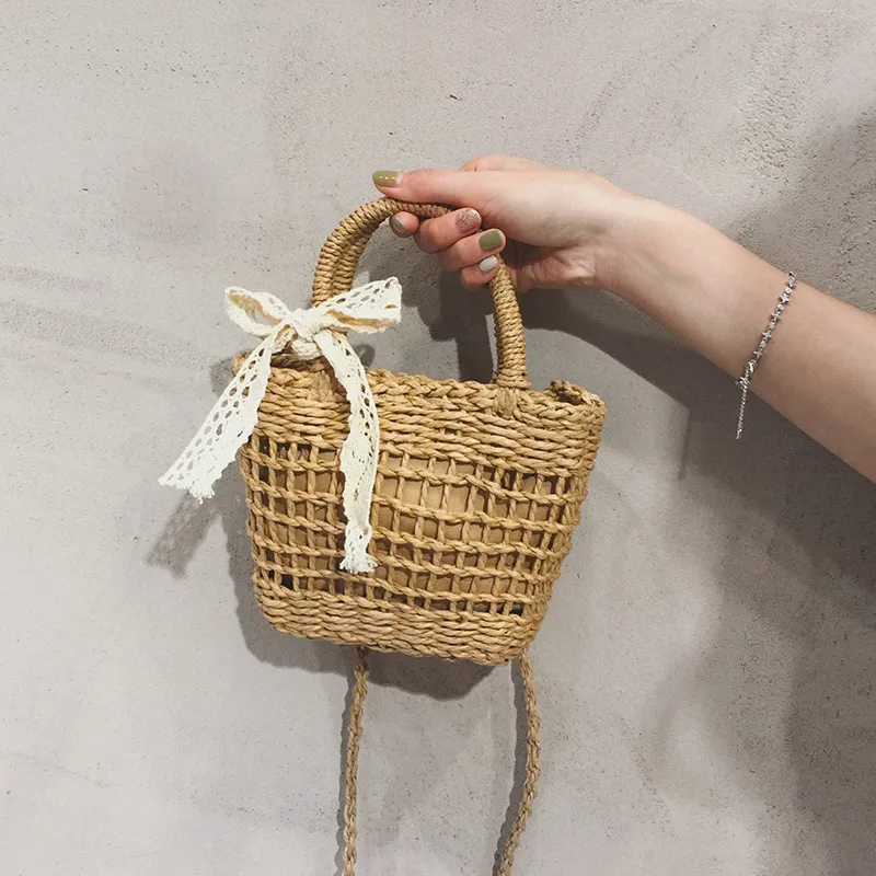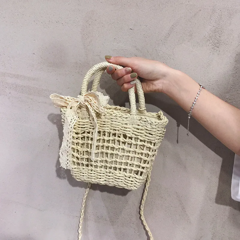 超可愛蕾絲蝴蝶結草編手機包