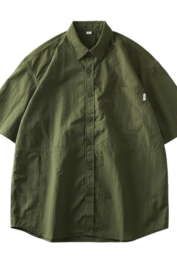 美式工裝口袋短袖襯衫