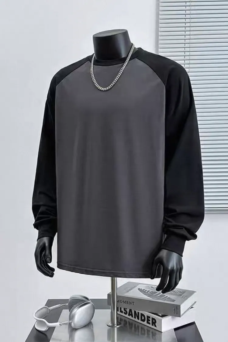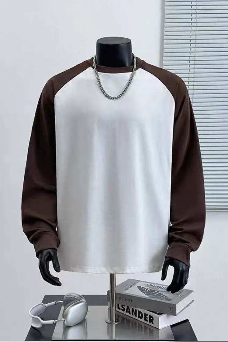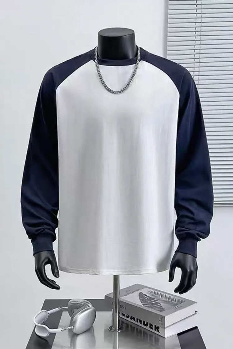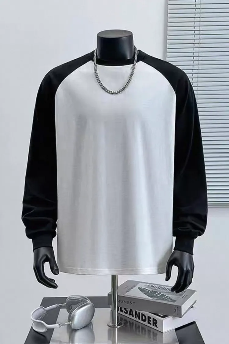 日系純棉拼接插肩長袖