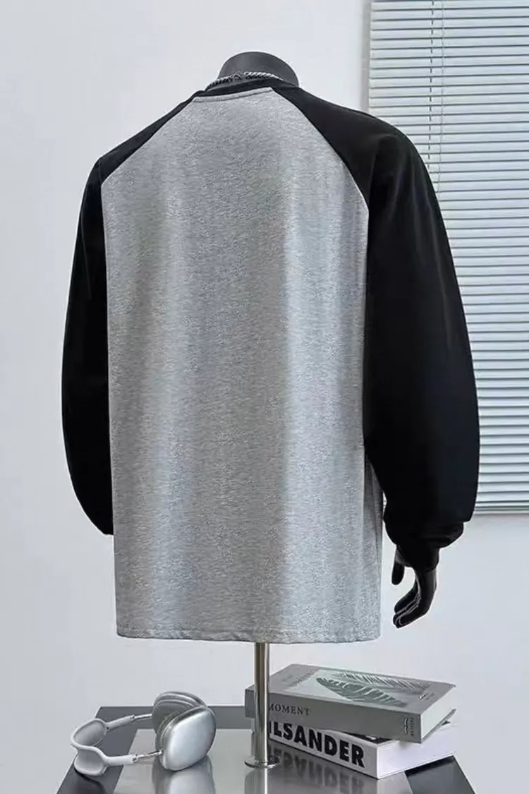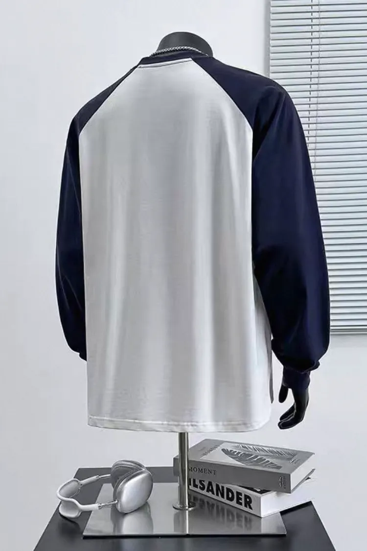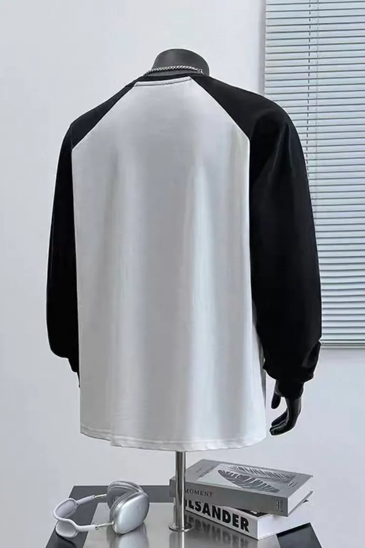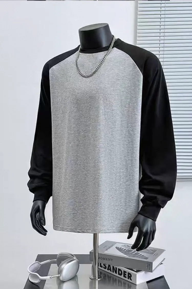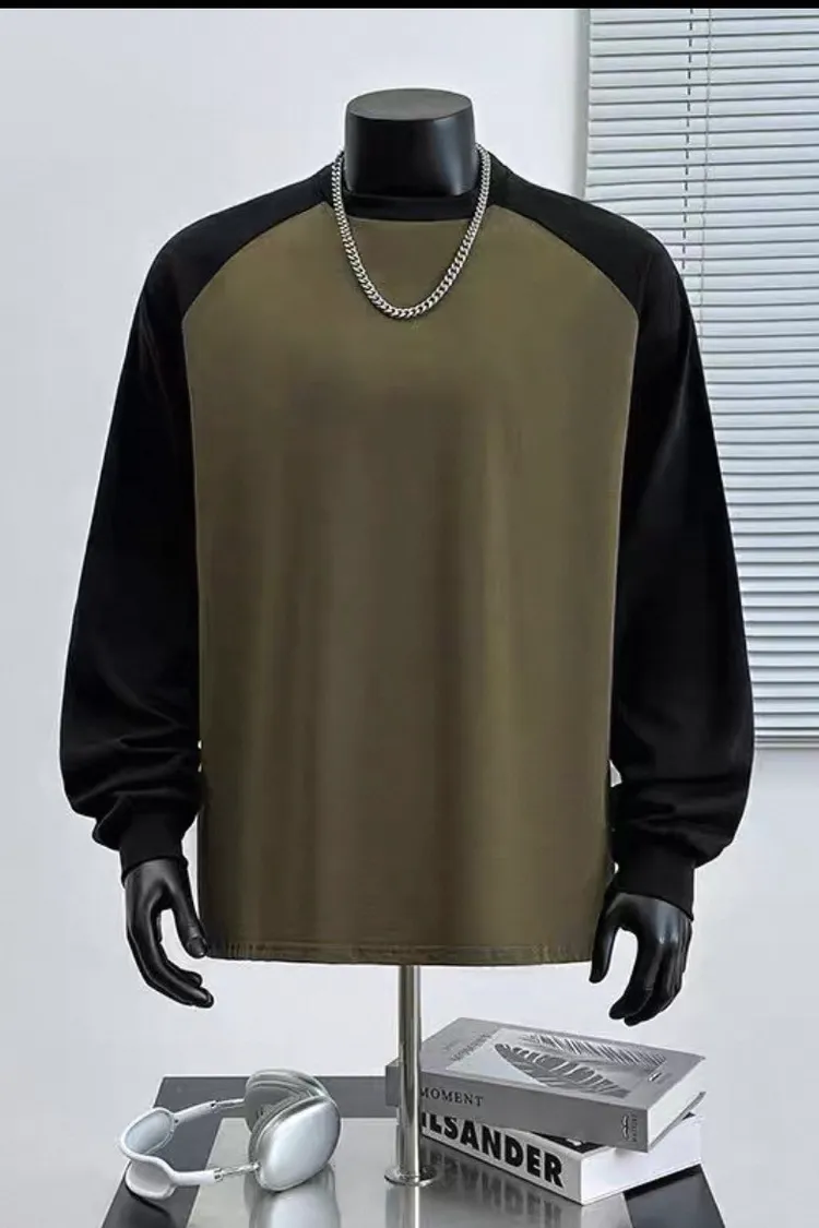 日系純棉拼接插肩長袖