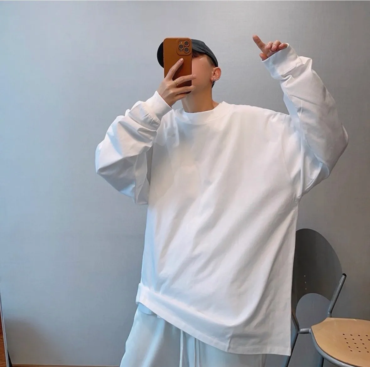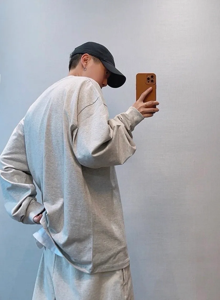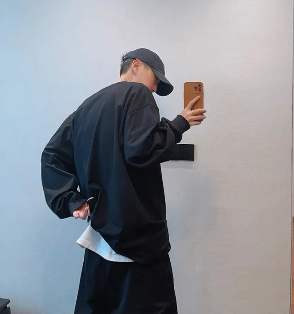 美式純色圓領長袖T恤