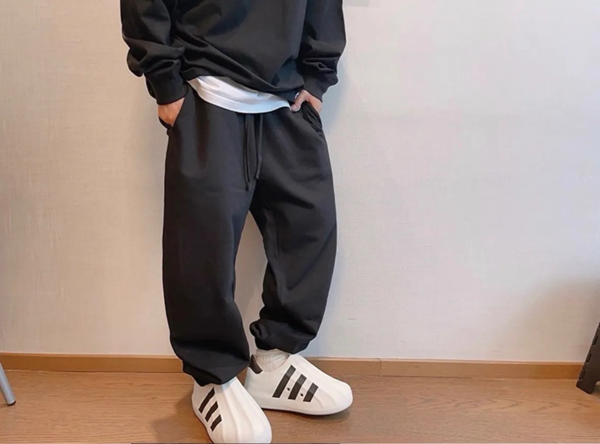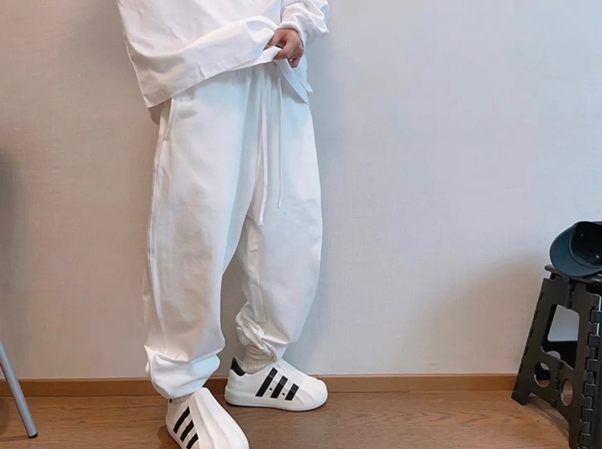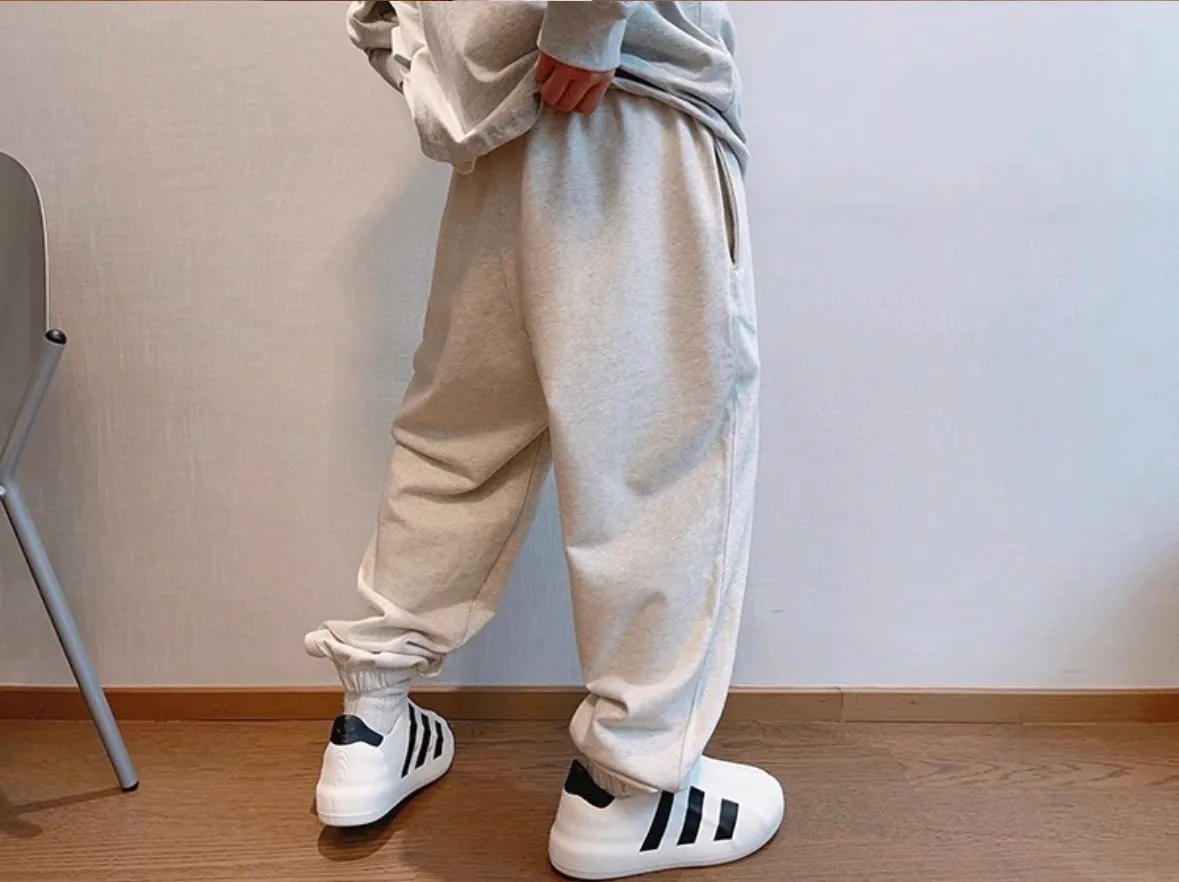 潮牌百搭棉純色運動長褲