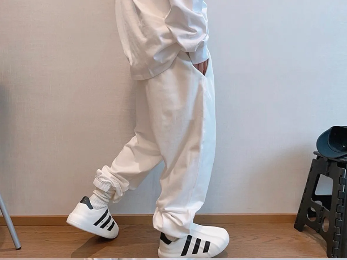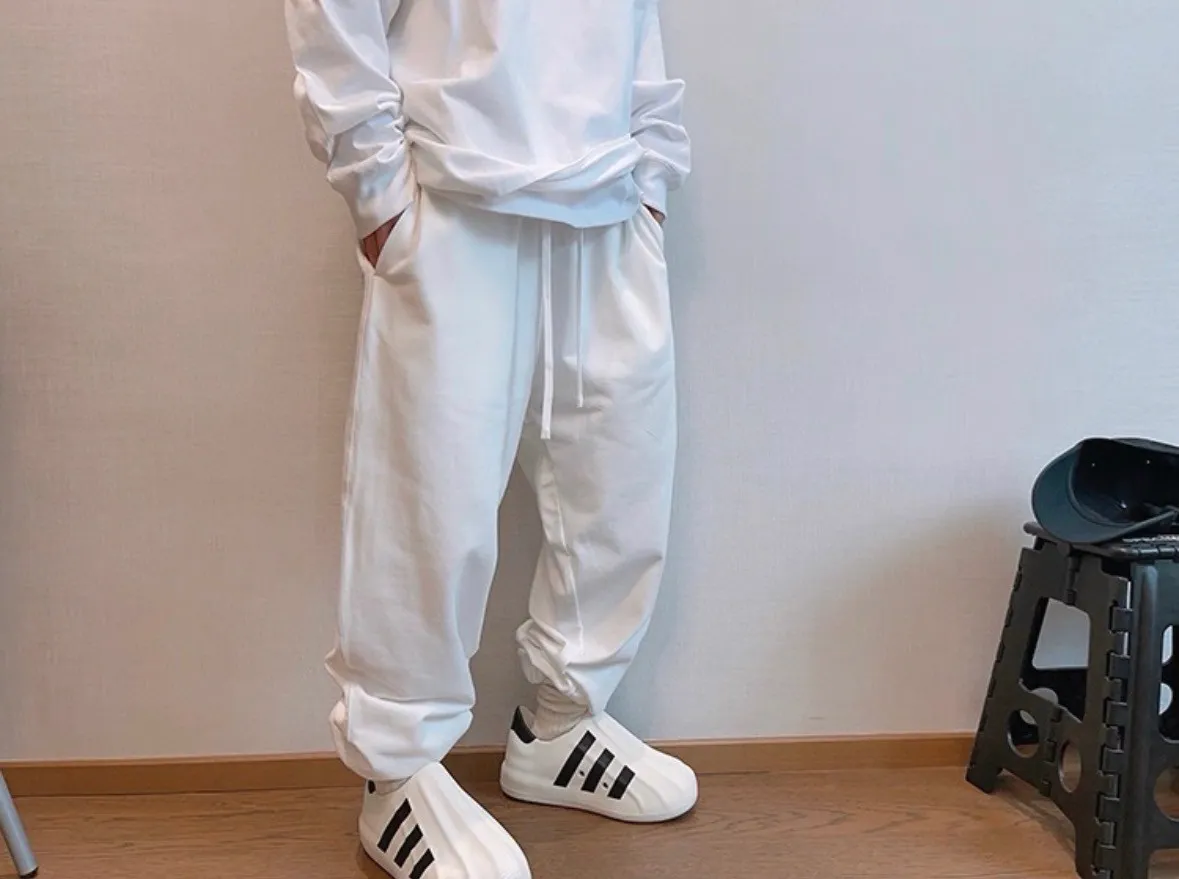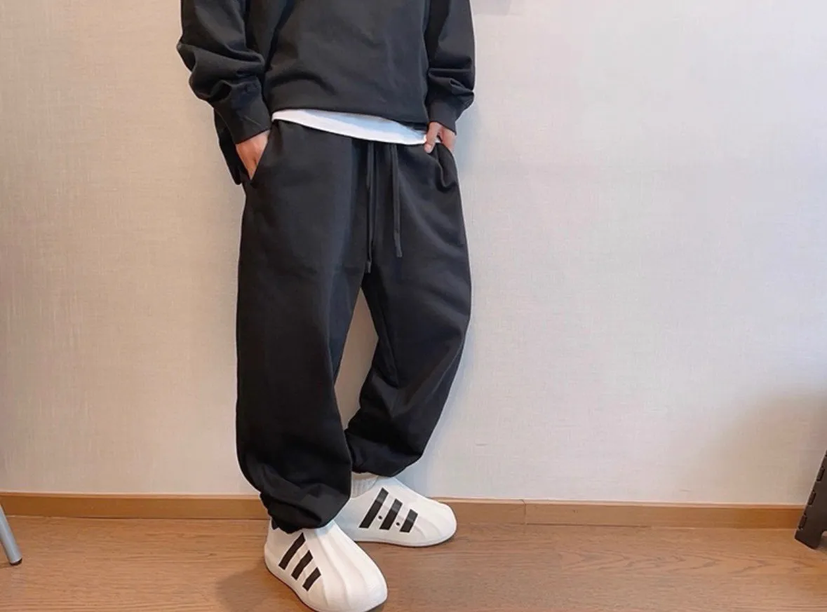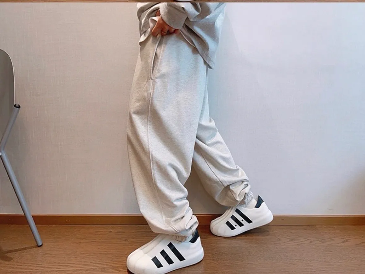 潮牌百搭棉純色運動長褲