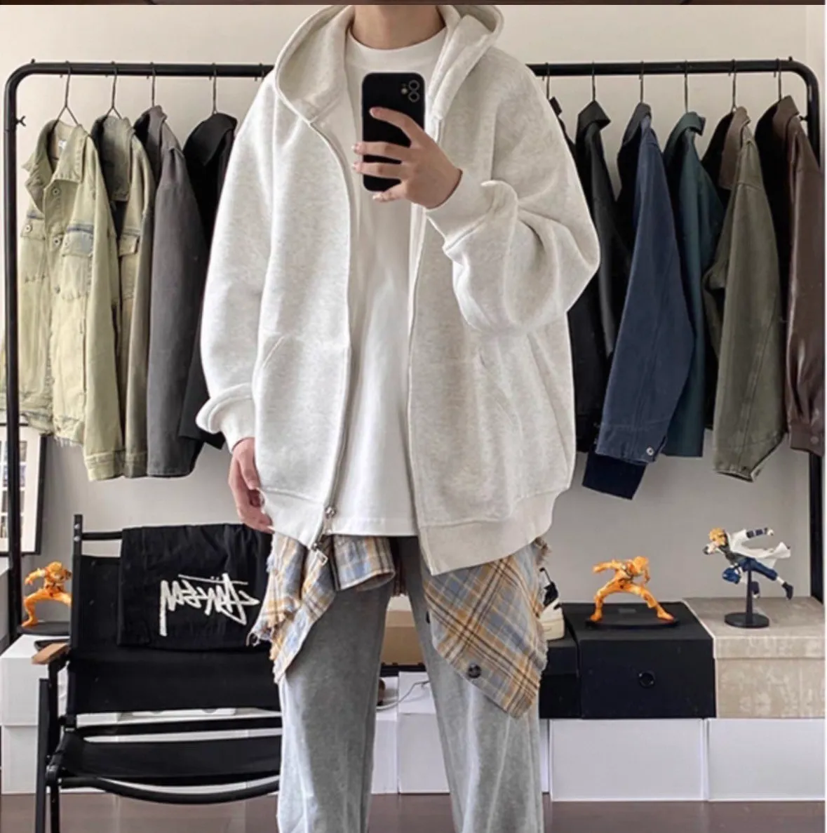 美式純色連帽外套