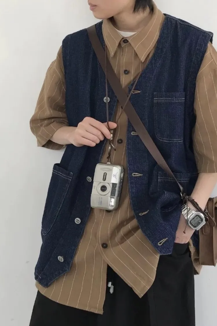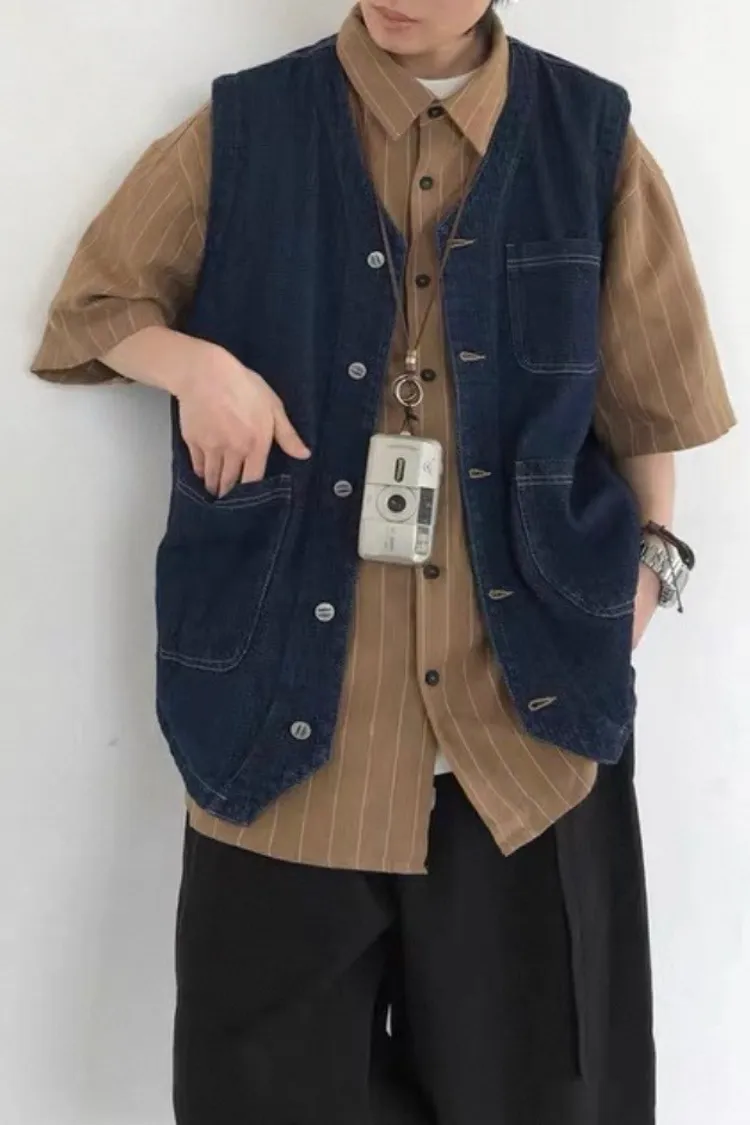 美式口袋工裝牛仔背心外套