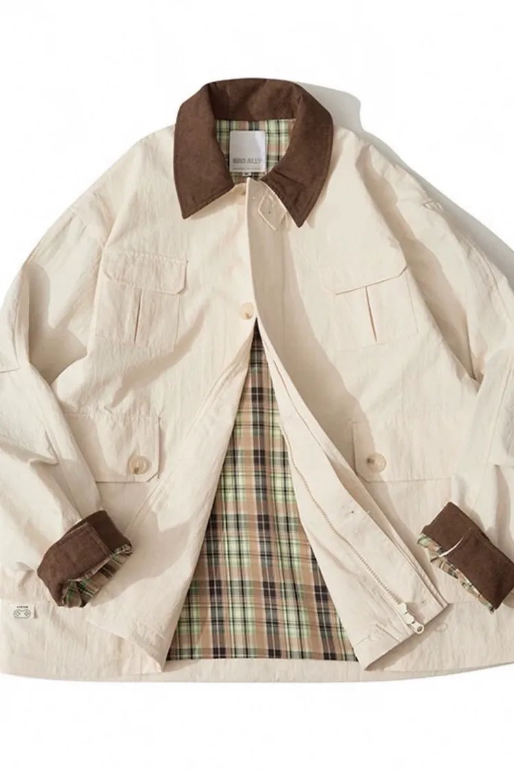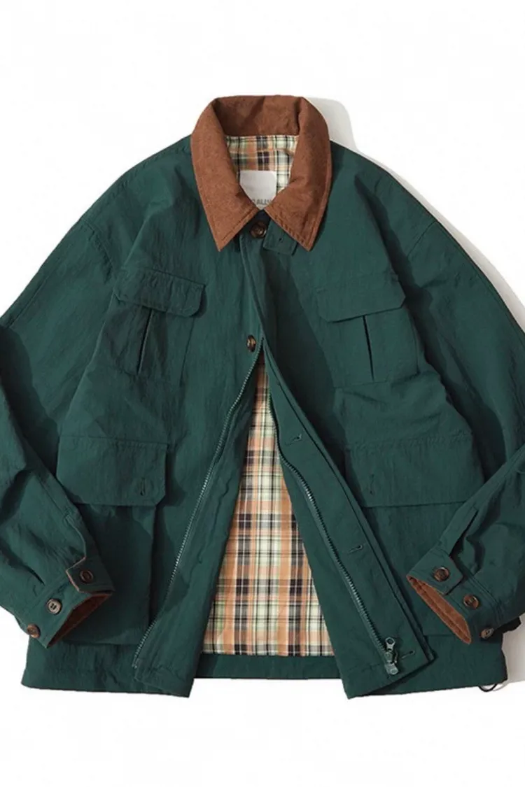 美式撞色翻領夾克外套