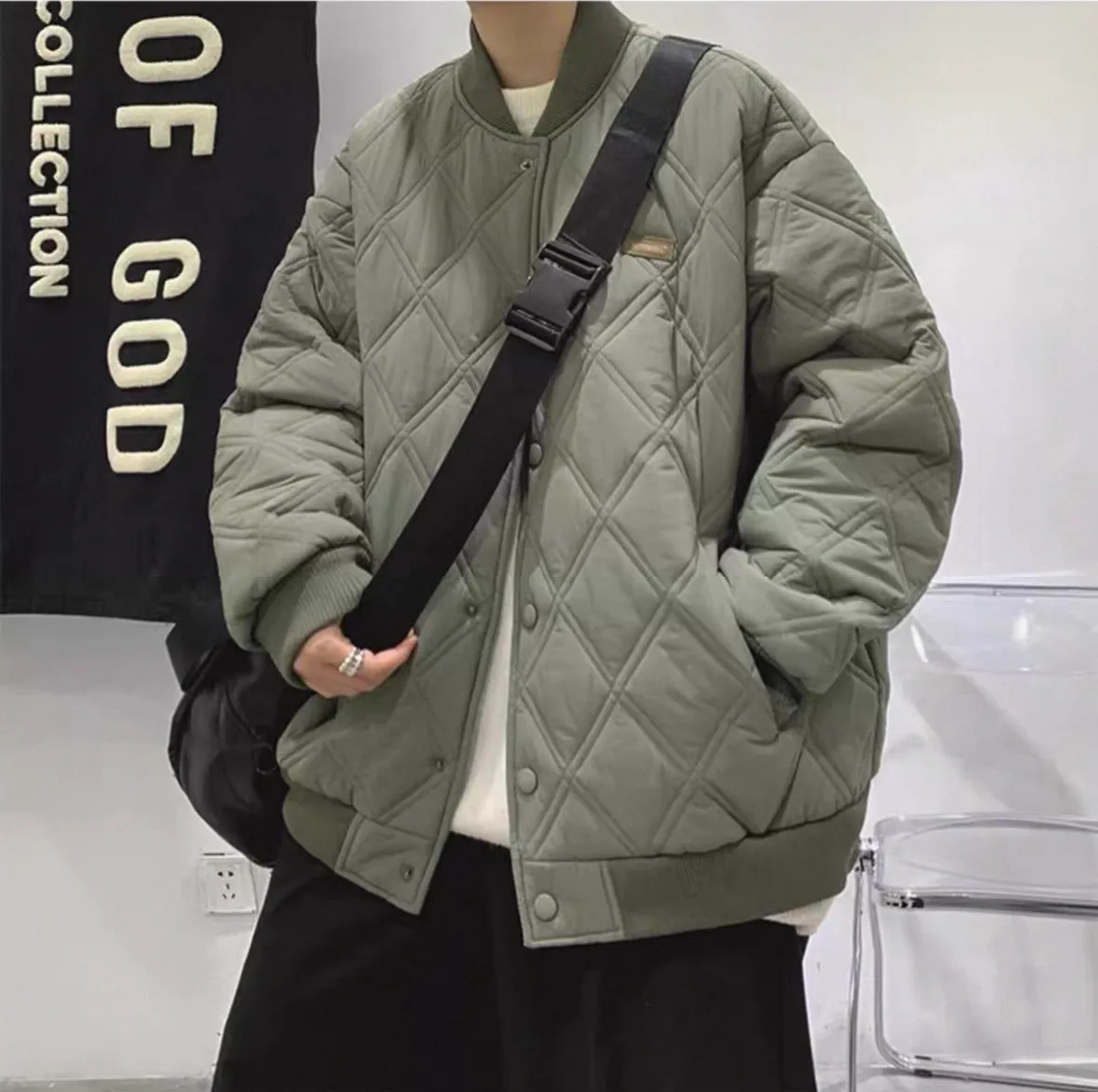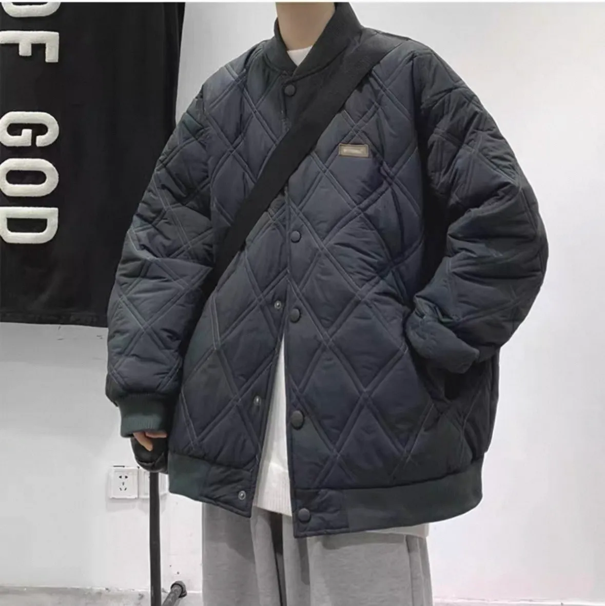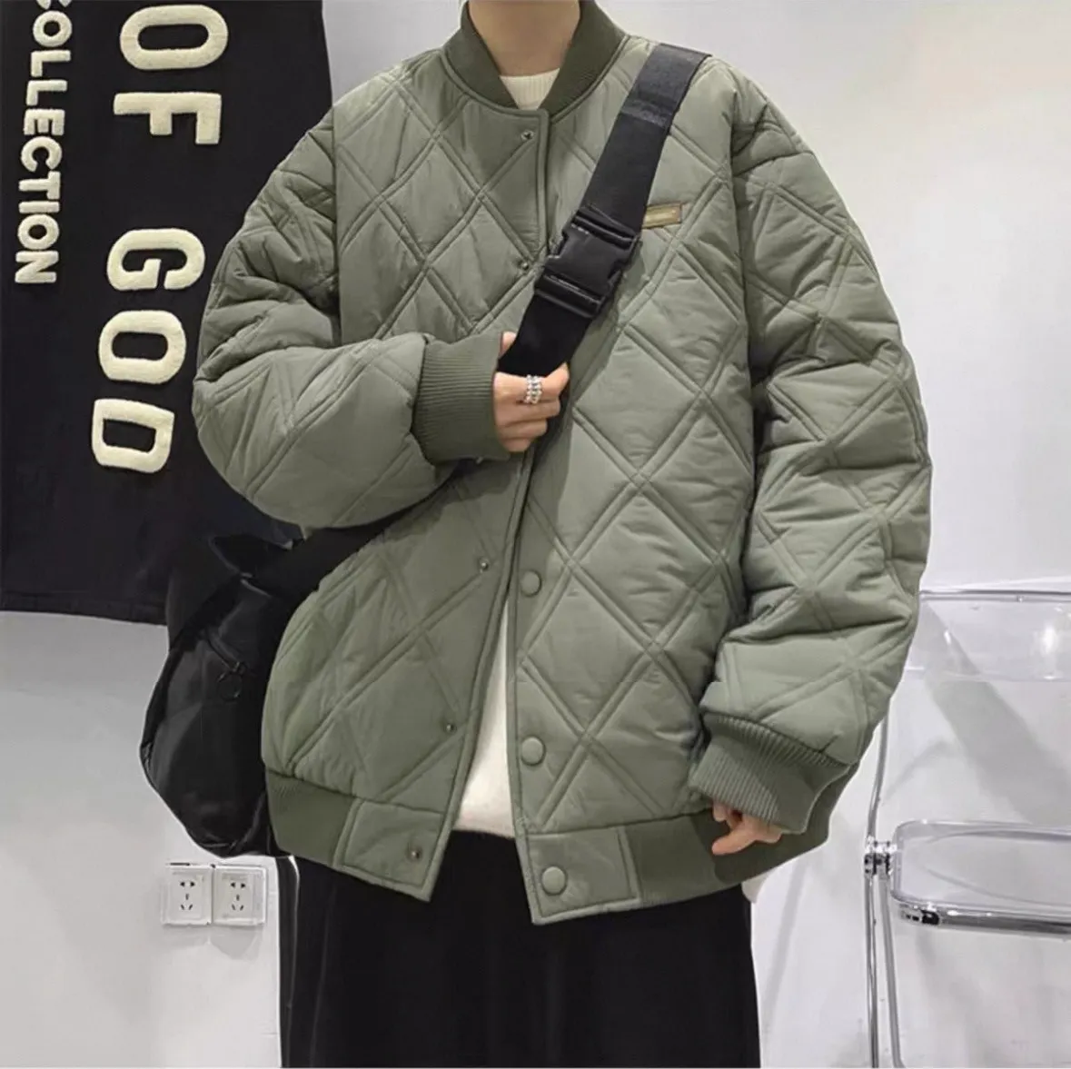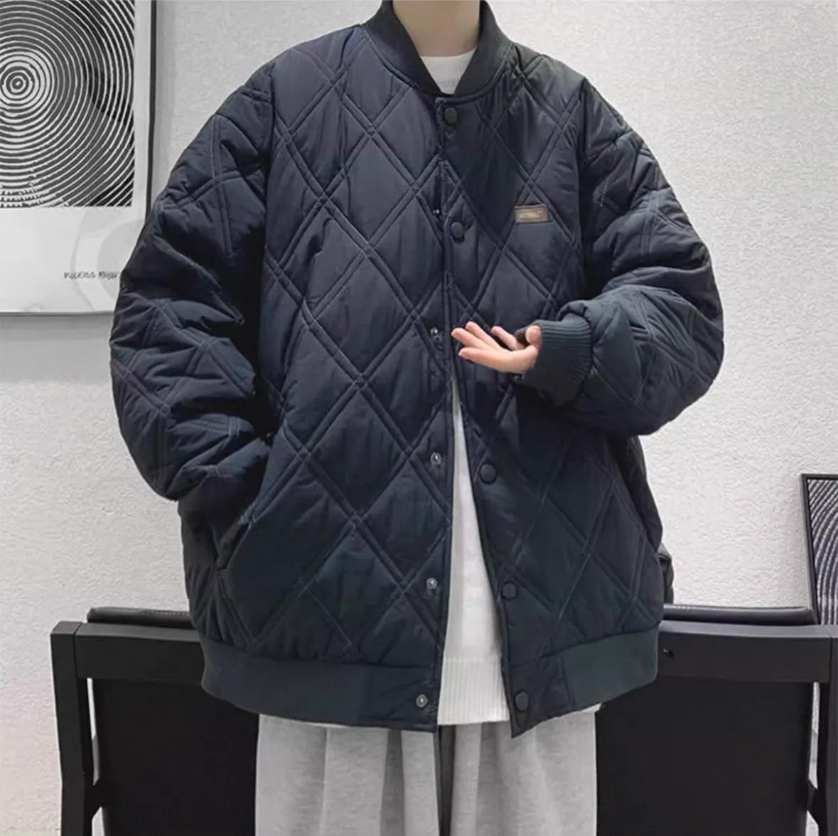 菱格寬鬆棉服外套