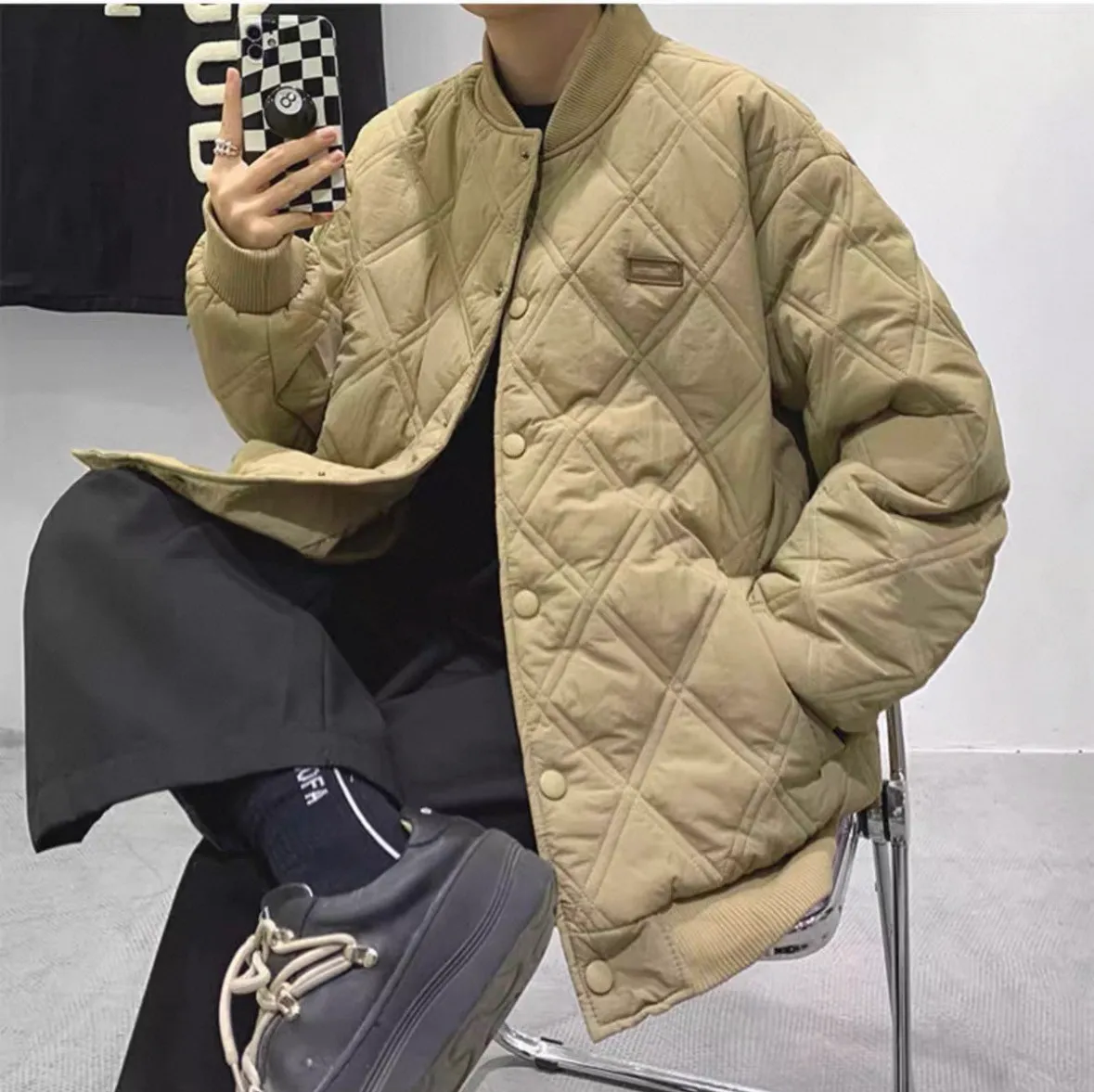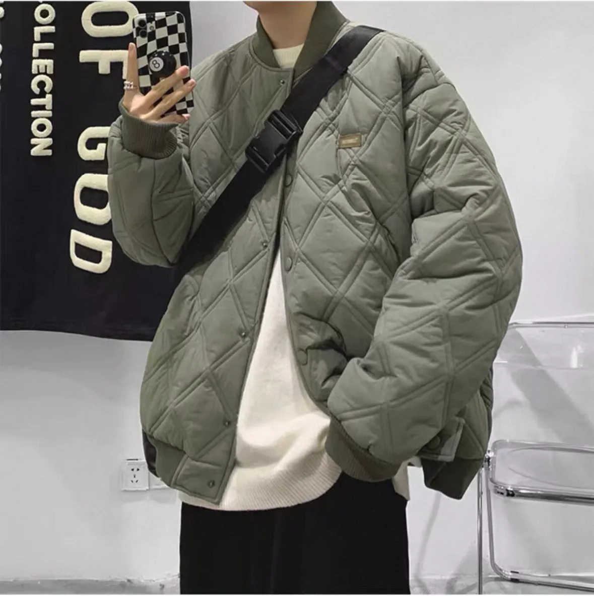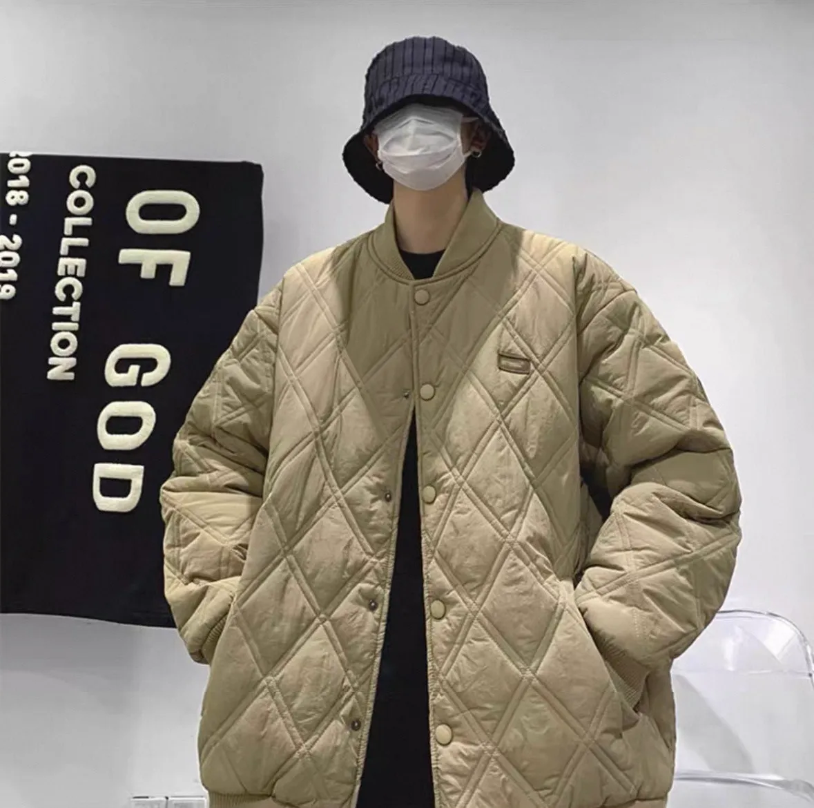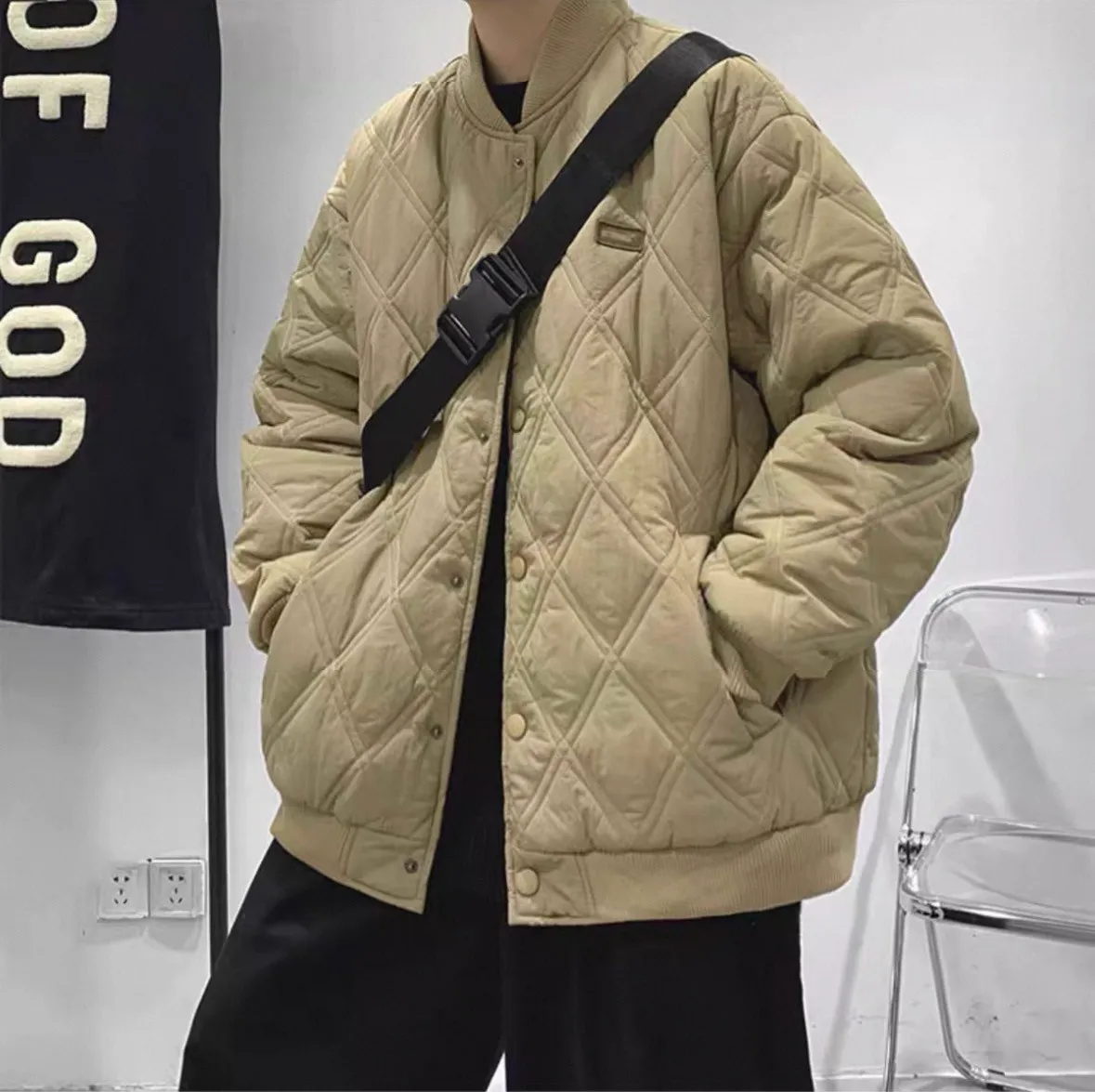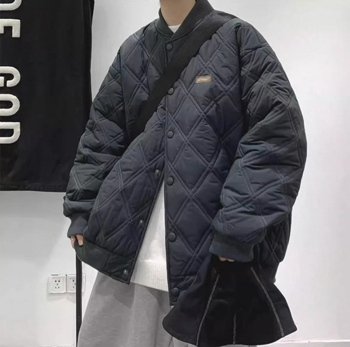 菱格寬鬆棉服外套