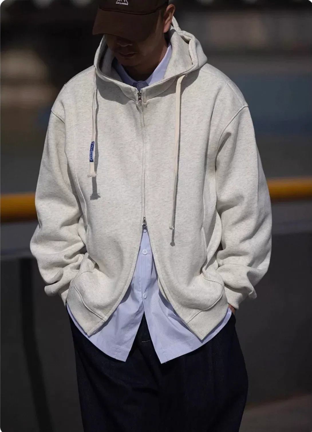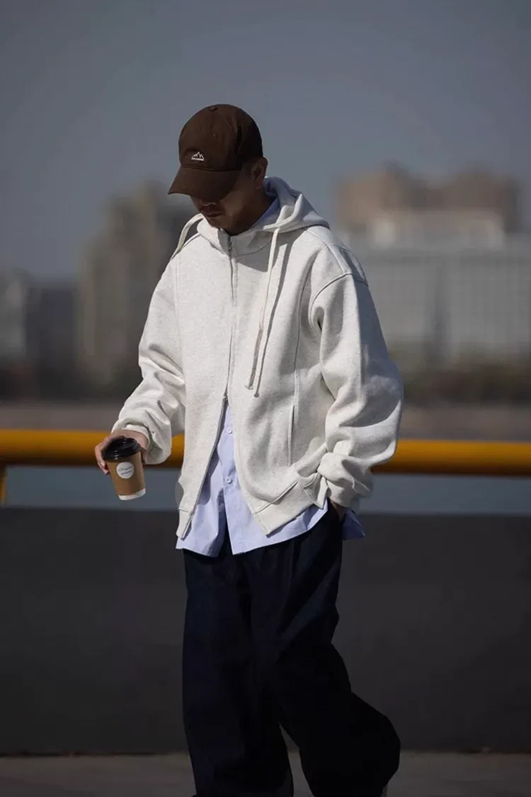 休閒雙拉鏈連帽外套