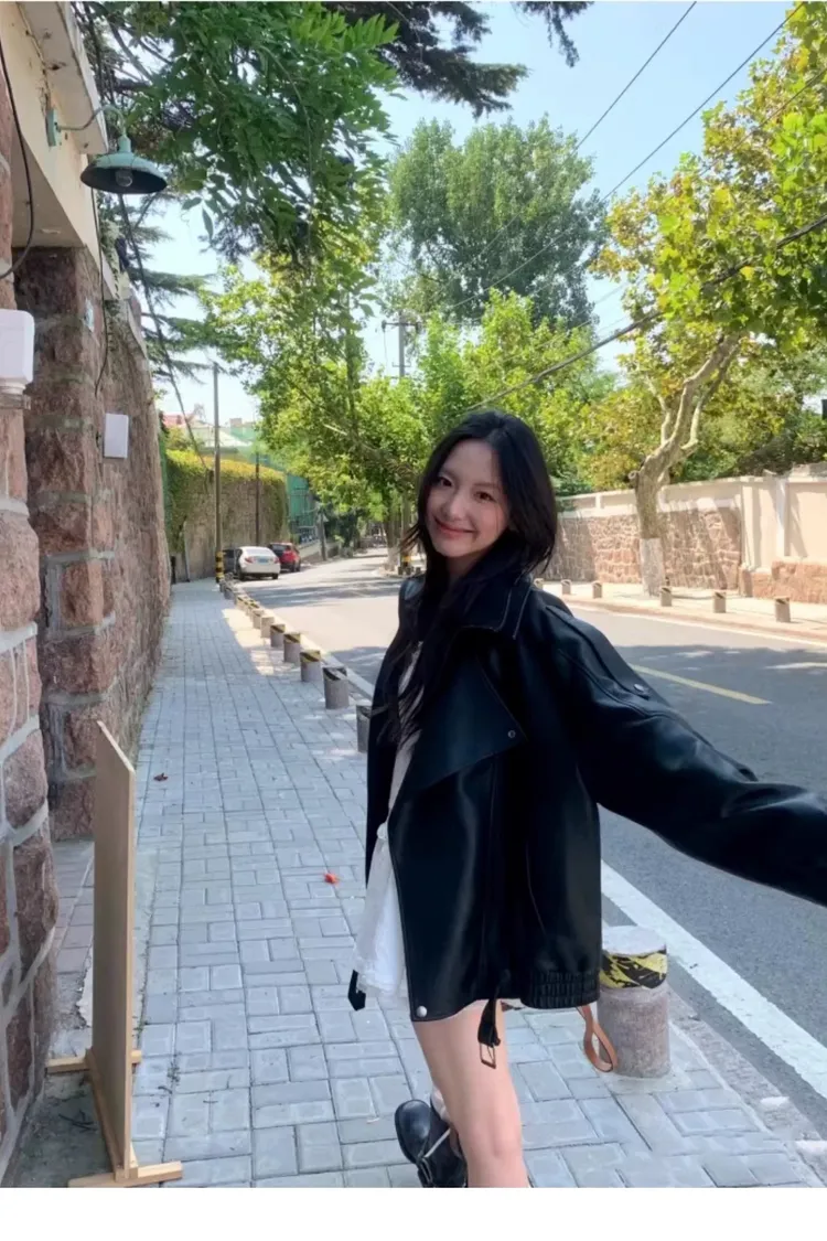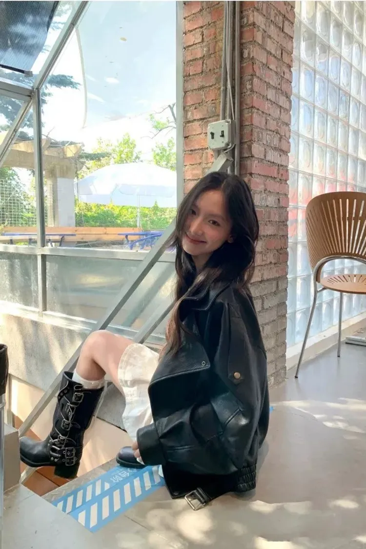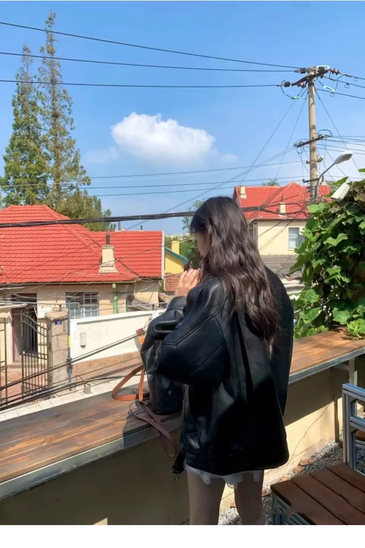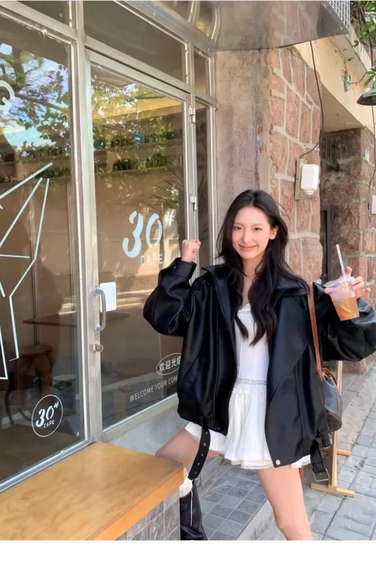 甜酷最強唯一機車大翻領仿皮革外套-M