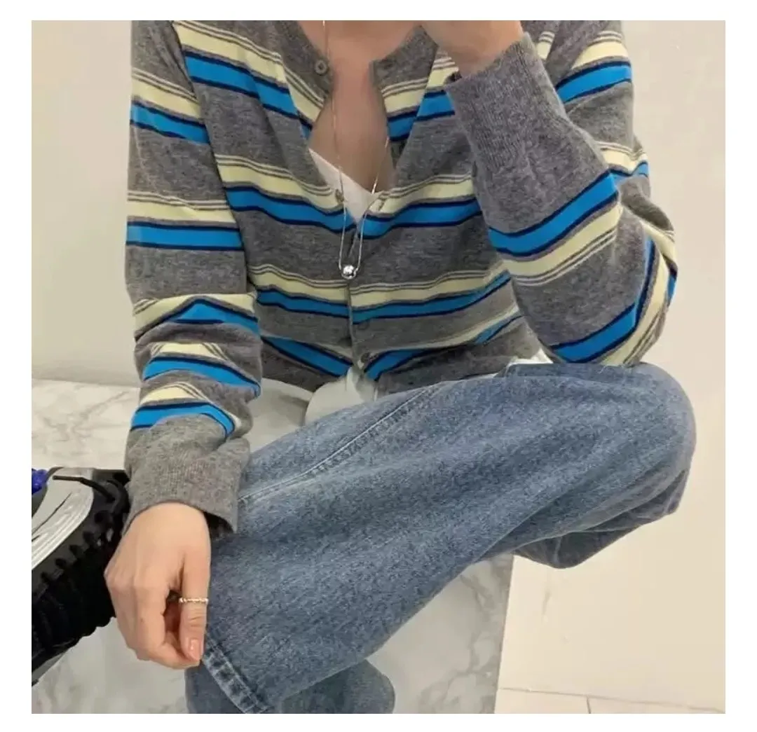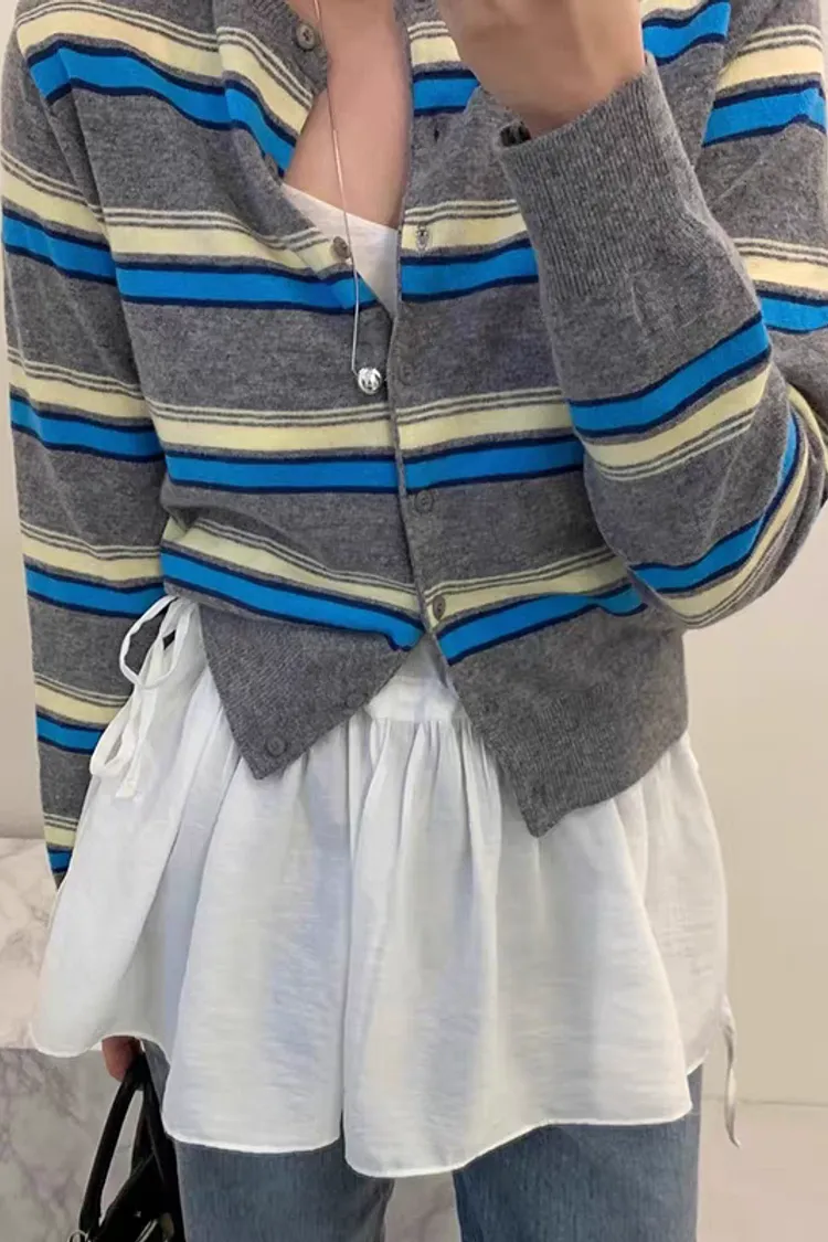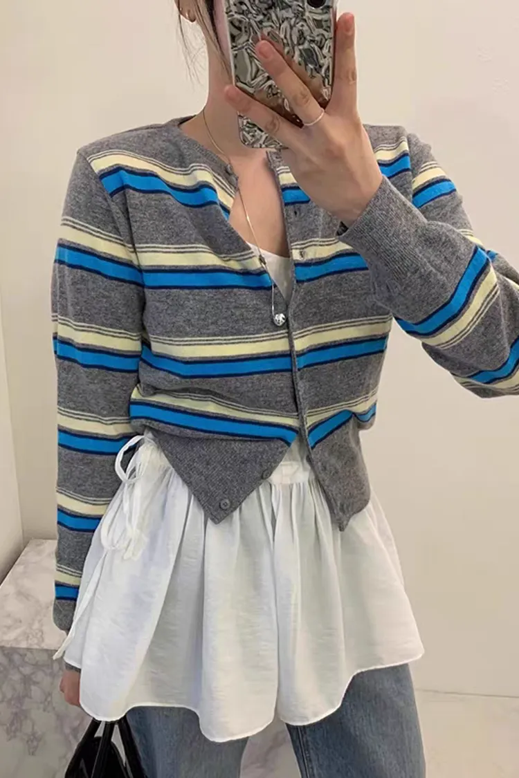 彩條配色排釦針織開衫