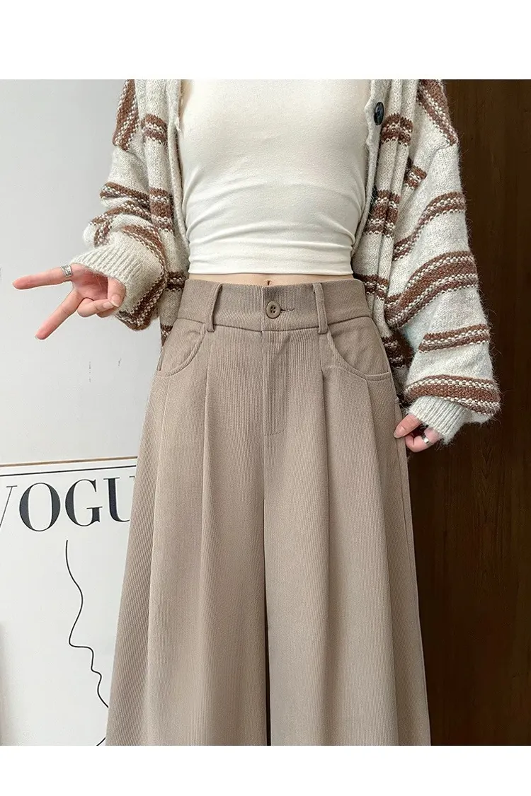 暖冬燈心絨高腰直筒西裝褲-L